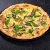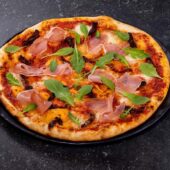 Prosciutto ham, sundried tomato, rucola, mozzarella, sauce